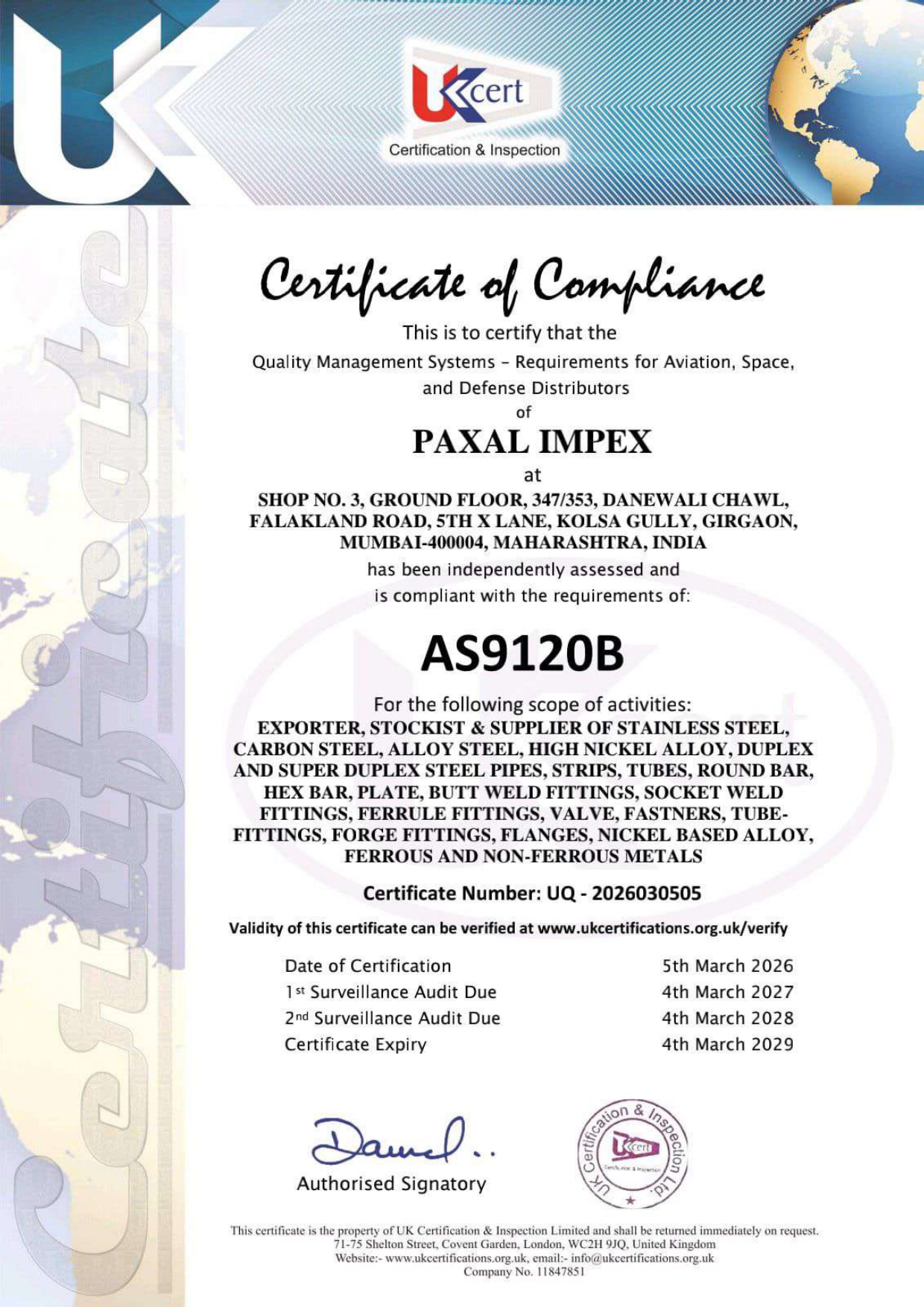 Paxal Impex was established in 2017, under the leadership and mentoring of intellectual individuals, is currently leading Supplier, Stockiest and Exporter of high-quality ferrous and non-ferrous metals products, specializing in stainless, carbon, Alloy-steel, High Nickel alloy, Copper Brass, Aluminium, Duplex & Super Duplex Pipes, Tubes, Bars, Sheets, Plates, Coils, Circle, Flange, Fittings, structural sections, valves and Fasteners. Backed by extensive inventory, technical expertise, and strict comply with the international standards.